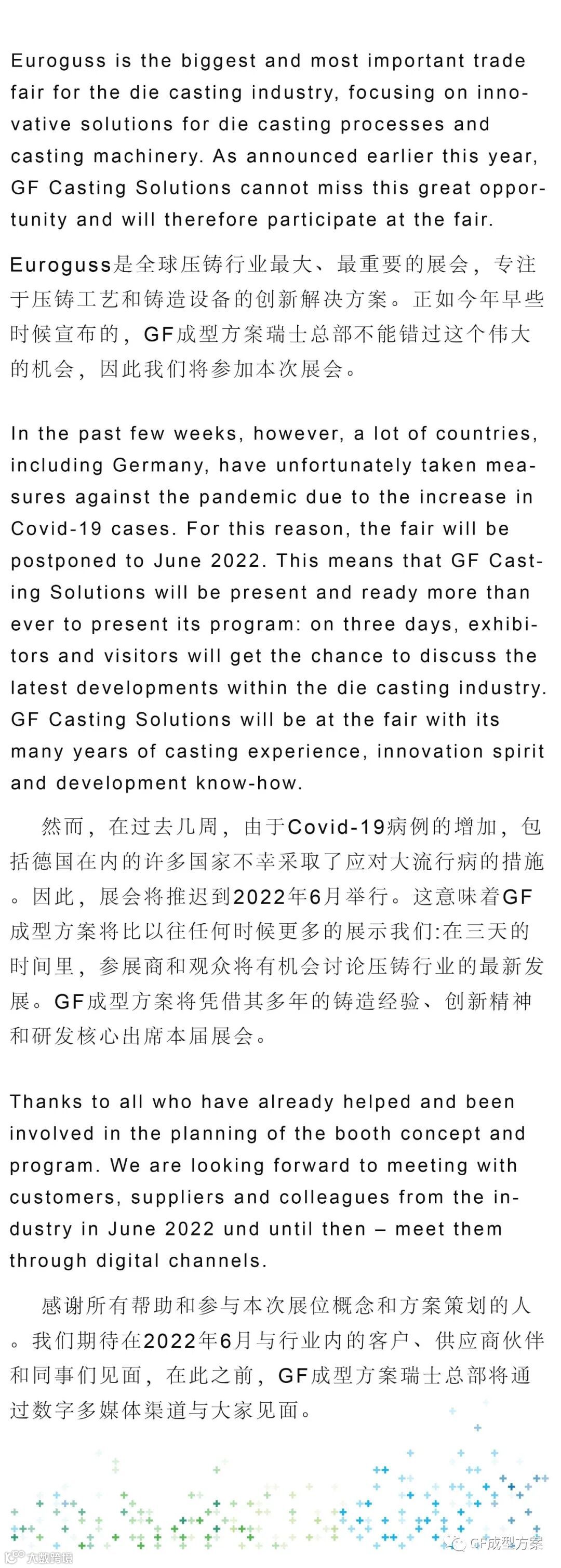 GF 成型方案瑞士总部将参加 Euroguss 2022 | Event postponed to June 2022