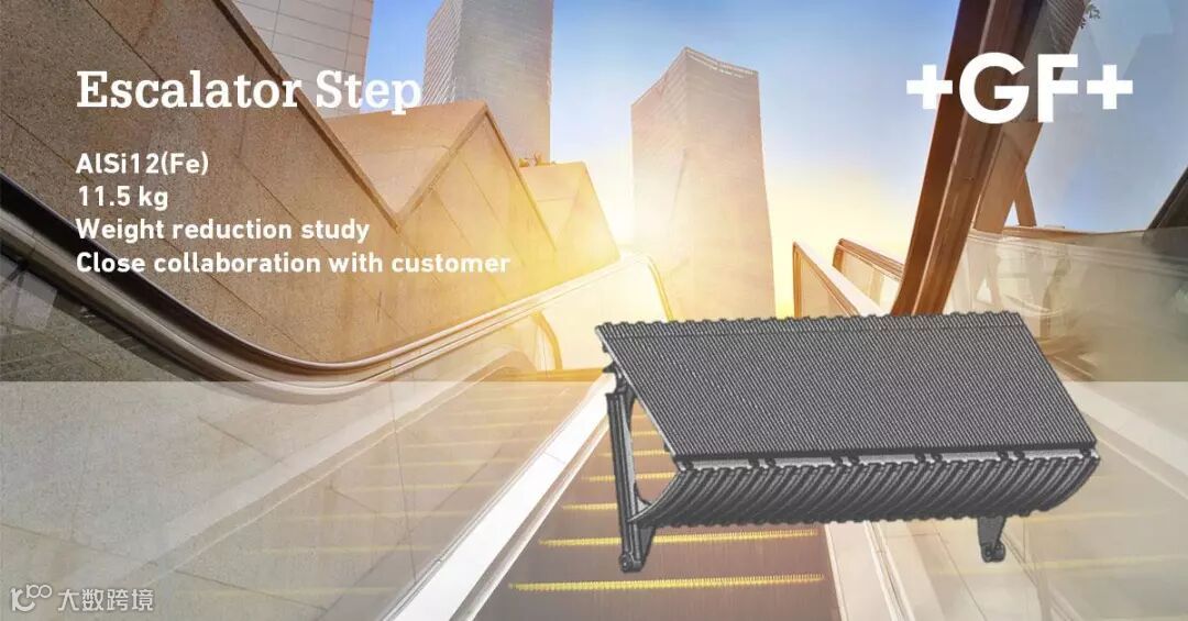 你知道吗,或许此刻你脚下的梯级踏板便是GF成型方案提供的?我们为世界许多城市提供轻量化自动扶梯踏板。如图,便是GF为客户设计和铸造的产品。通过与客户的紧密合作,并凭借长期的研发和丰富的铸造经验,我们设计了高质量以及轻量化的自动扶梯用于应对日常城市生活需求。