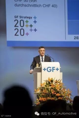 随后,乔治费歇尔首席执行官Yves Serra先生展示了涵盖三个核心业务的数据,包括:GF管路系统,GF汽车产品和GF机加方案。他的演讲不仅介绍了企业在全球经济发展中的状况,同时向股东宣讲了GF的企业战略以及如何加强创新能力,拓展营销业务,推动实益业务的商业动机。