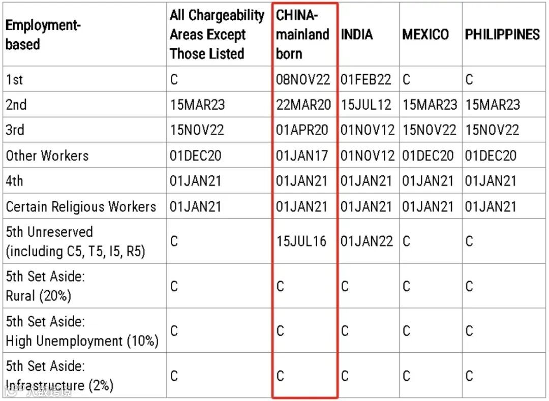 ✅ EB-5投资移民(乡村、高失业率、基建):显示“C”,无排期!