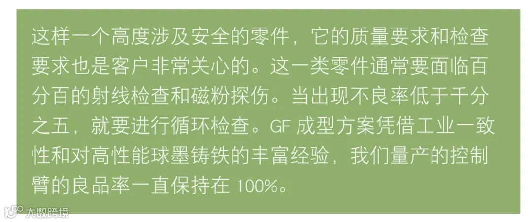 关于球墨铸铁的底盘件,如果您在设计,材料,和工艺开发方面有任何感兴趣的方面都可以与我们联系。GF成型方案可以通过集成化设计释放更多底盘空间,有兴趣的读者朋友,欢迎留言或者联系我们,获取更多信息。