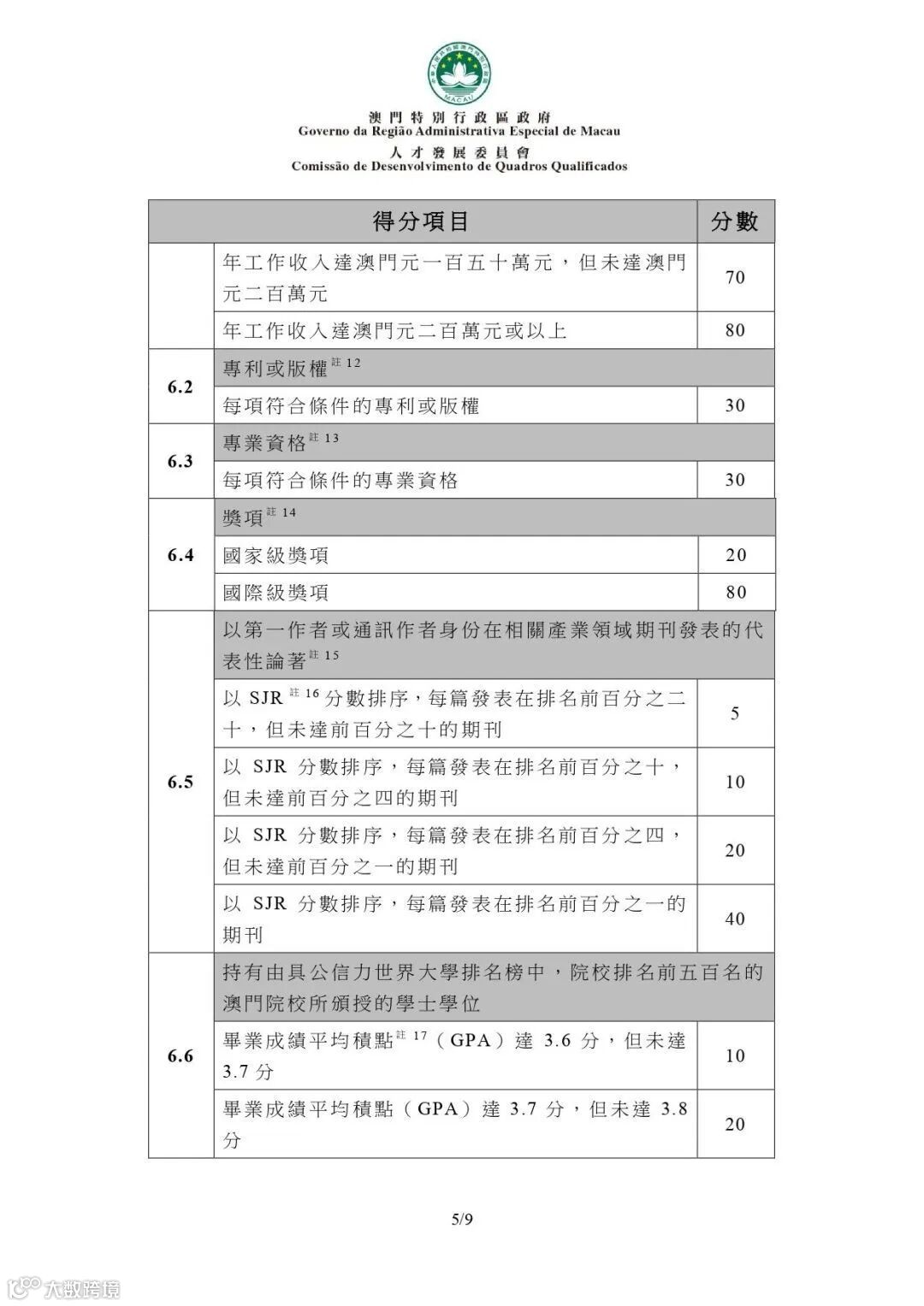 ⑥ 年薪达36万澳门元(指定条件毕业可放宽至30万澳门元)