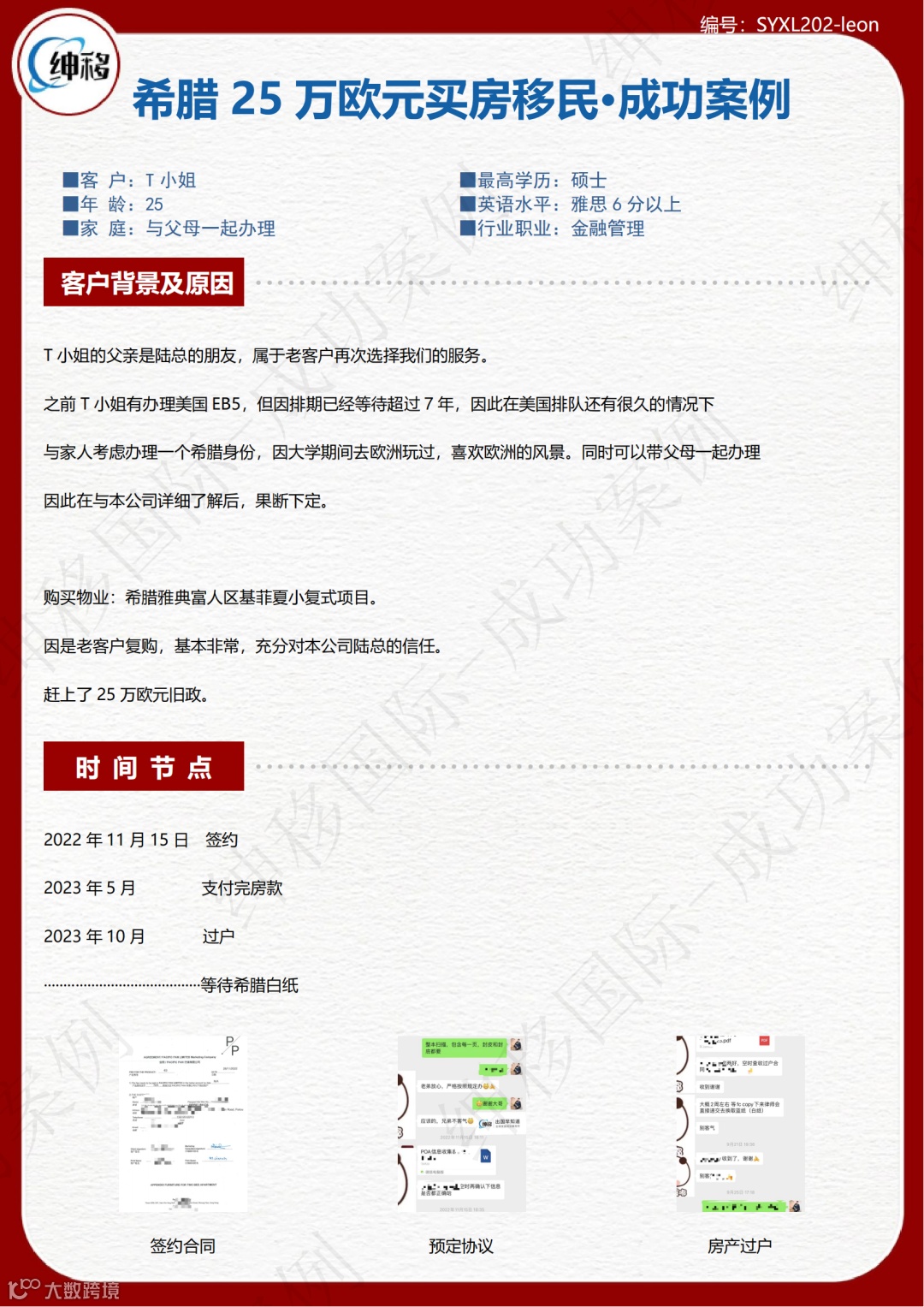 作为提供一站式移民解决方案的服务机构,绅移国际团队为T小姐制定了完善的希腊置业投资移民计划。