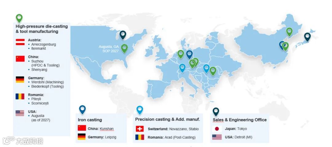 今天我们一起单独看看GF成型方案事业部,在全球的布局又是怎样的?我们是如何被称为世界级的供应商的。从上面分布图中我们可以看到,我们在北美市场和欧洲市场以及亚洲市场的七个不同的国家均设有生产基地,研发中心,模具中心或者销售办公室等。