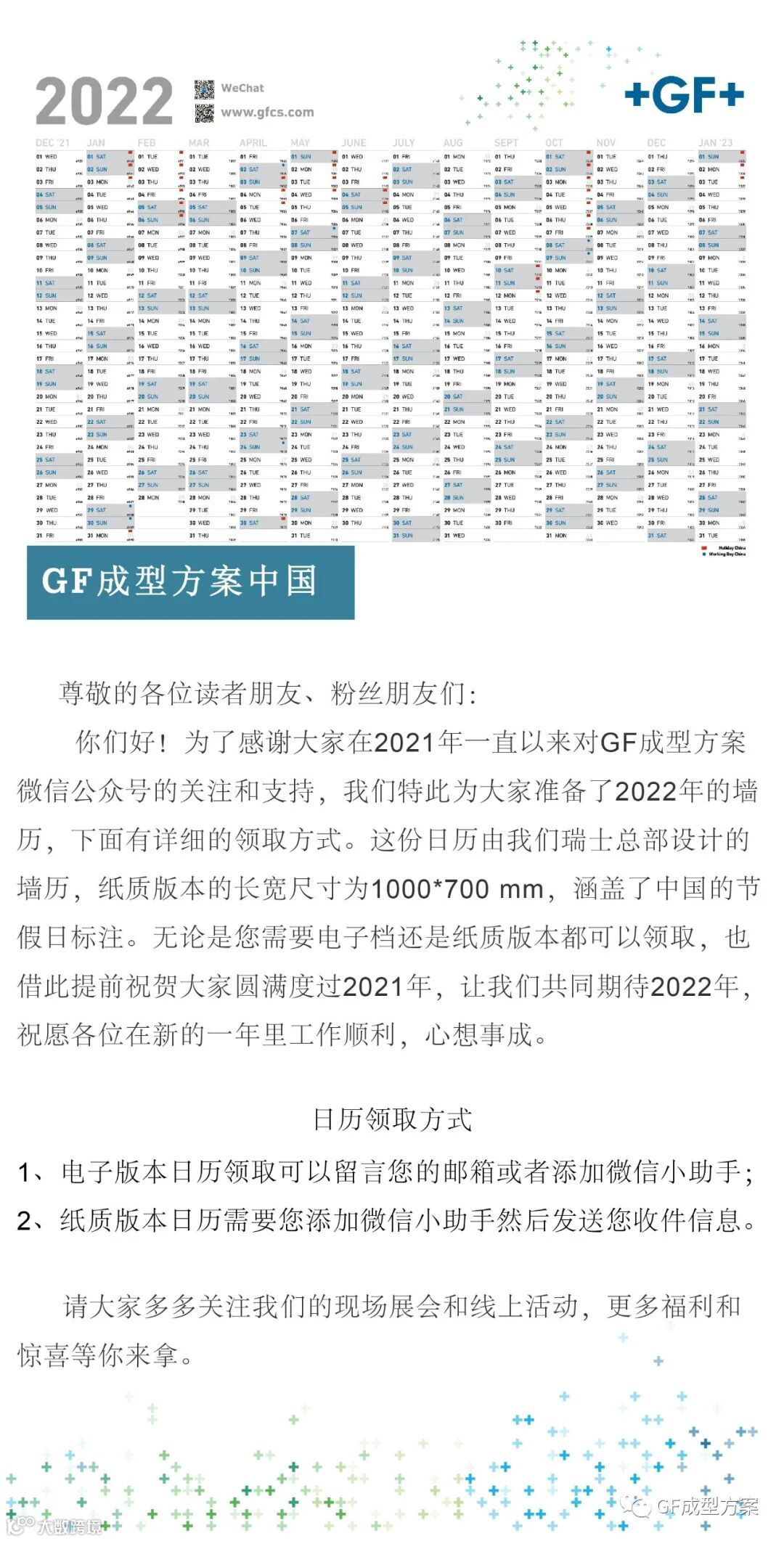 粉丝福利 | 2022年GF成型方案墙历免费领取