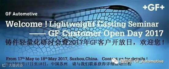 您知道吗?5月17日– 5月18日GF会在中国举行“铸件轻量化研讨会暨2017年GF客户开放日”。与GF“绿色生活”有关的独特的仿生学设计及可持续发展也是活动议题之一。想参加这一活动吗?请与我们取得联系获得更多信息。