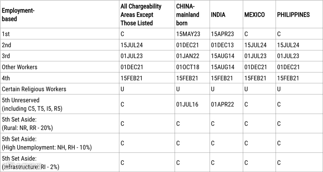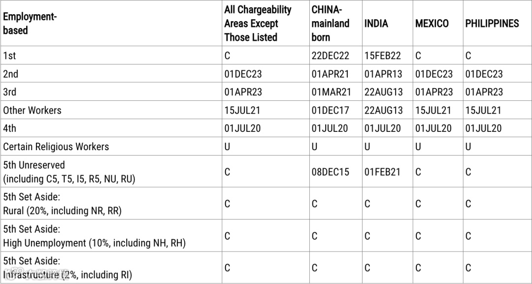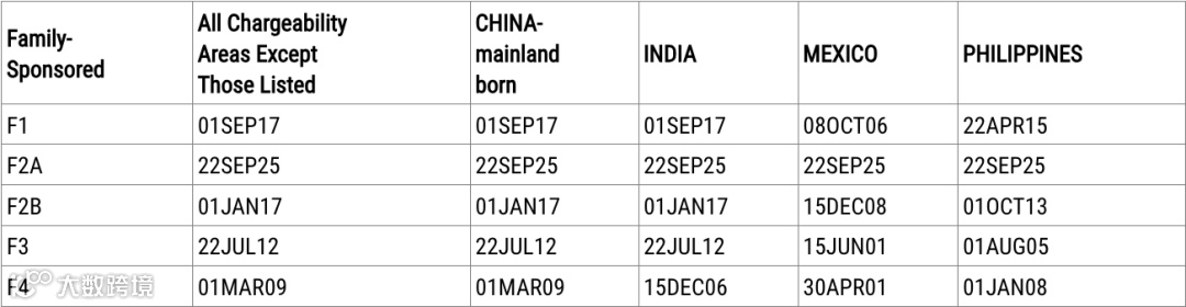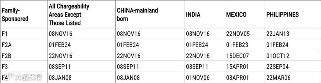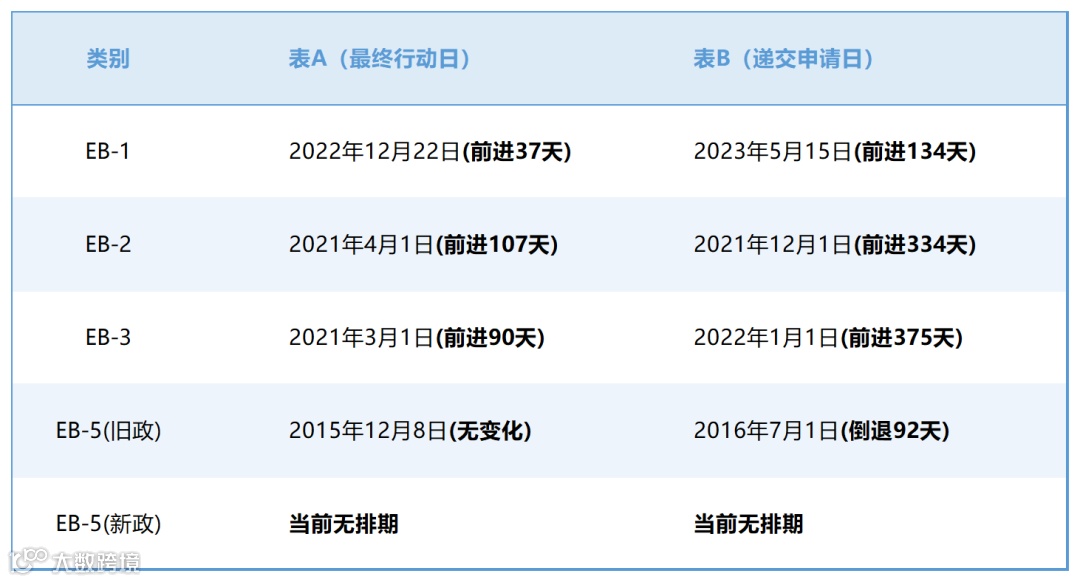 表A,移民签证的最后批准日期(Application Final Action Dates),又称移民排期;
