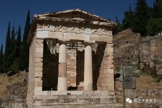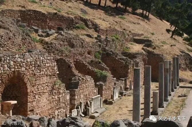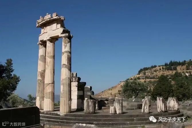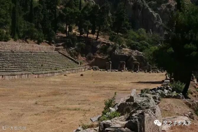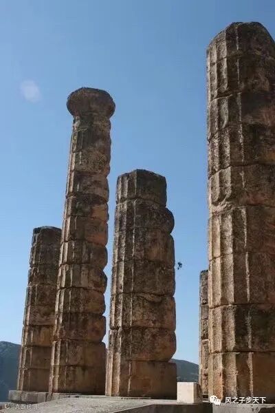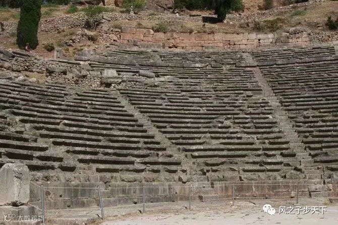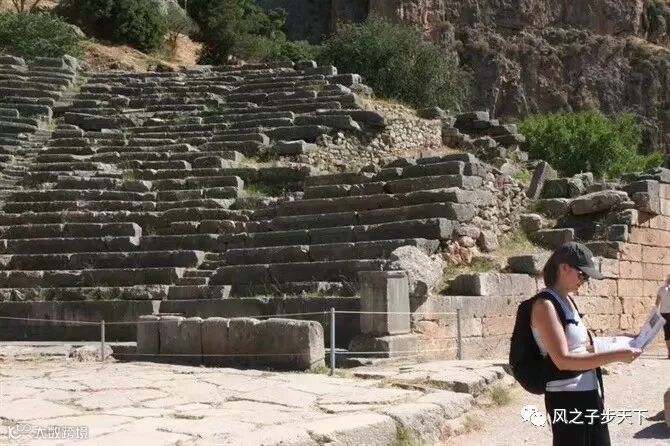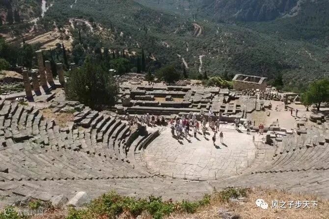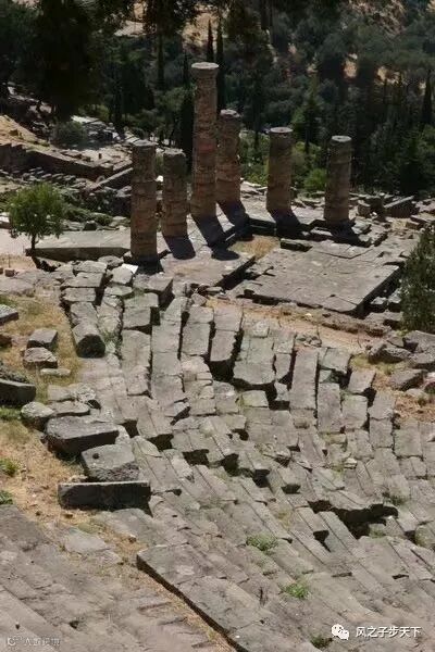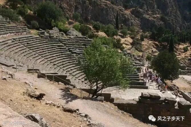 坡上的阿波罗神庙有一间几乎完好只缺屋顶的小殿,最大的会殿剩下几根粗大的石柱刺向天空,依坡而建的半圆大剧场很是完整,这里原来是希腊神圣的世界中心。作为剧场,这里现在依然可以使用,从图片资料来看在一些重要场合也确实举行活动,只需在剧场中心平地搭建一个舞台就能办一场表演了。