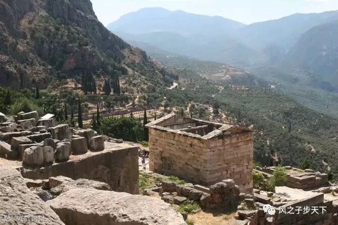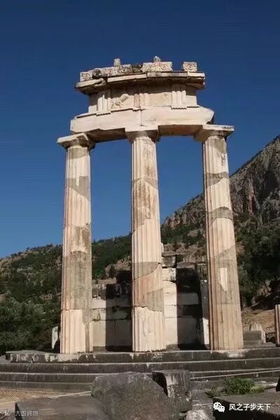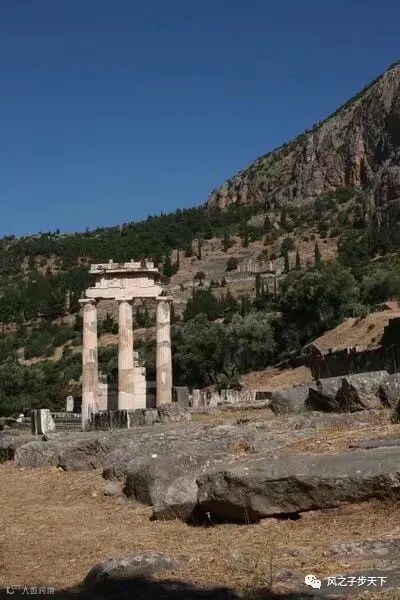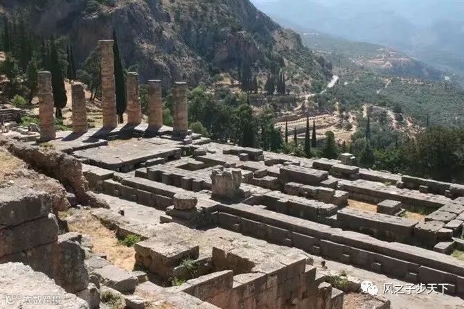 酒店餐厅有个宽敞的无敌景观大露台,初生太阳光下拍摄效果一级棒。九点出门正好两个小时,我们走完德尔斐小镇沿公路向下坡的雅典娜神庙和上坡的阿波罗神庙两处古迹,这是希腊的古迹中整理得最完好的遗址。