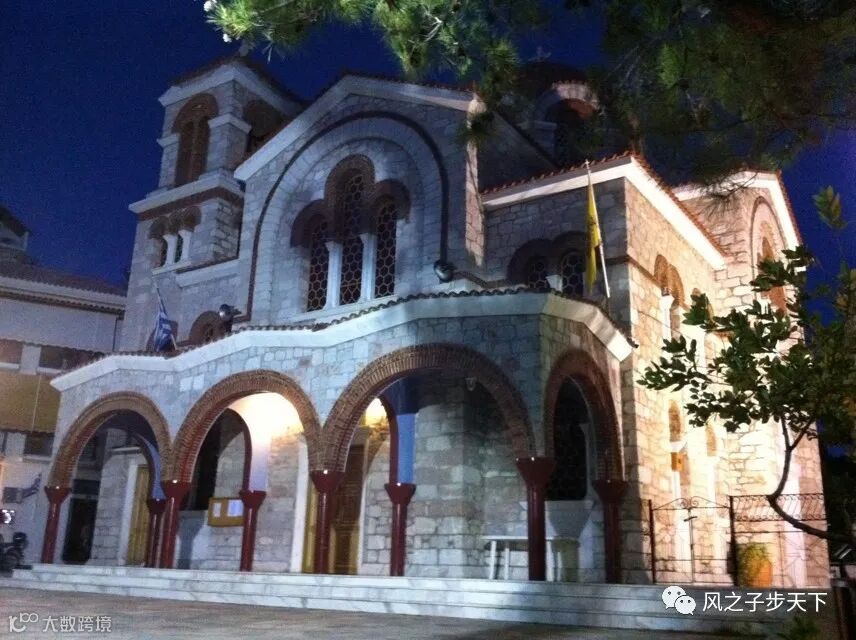 由于大部分游客都采取从雅典过来的一日游方式,这个好像还活在中世纪的古城很安静,到了黄昏游人稀少。山间的空气有些清冽,最高处的第四台阶公路边上,新建的豪华大酒店,停着旅游团的大巴车,同我们入住的老屋酒店是另一个世界的味道。月光下的古老教堂显得有些诡异,在相机的取景框中显出童话世界中魔幻城堡的感觉。