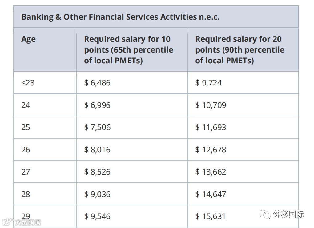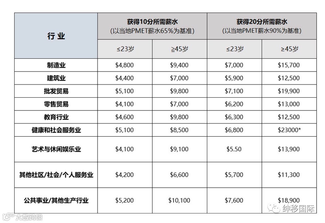 . 如果申请人的工资达到前90%的水平,将获得20分;