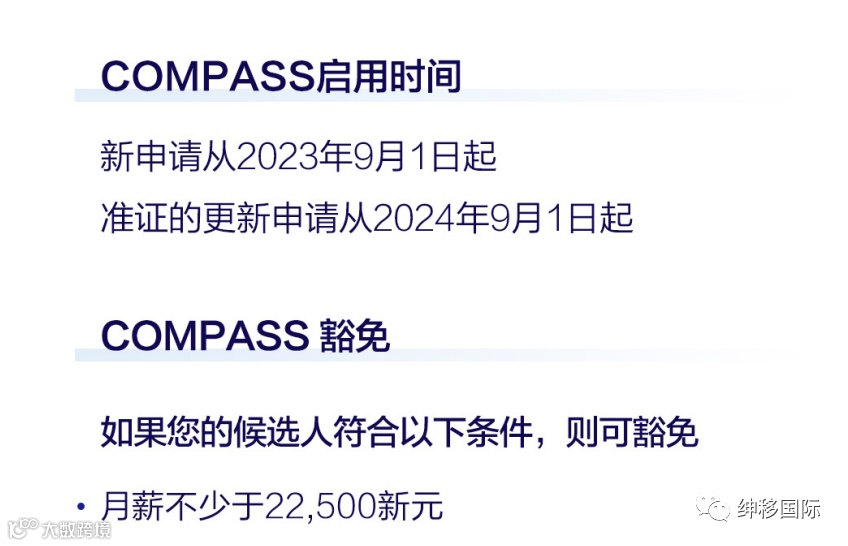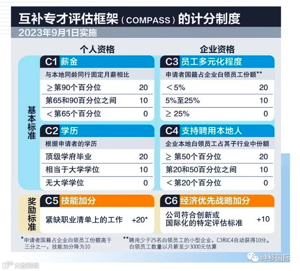 2023年9月1日起,新加坡移民自雇准证EP正式进入打分时代,新的EP申请人士将通过“互补专才评估框架(Complementarity Assessment Framework 简称COMPASS)”进行打分。分数不够或无法移民。