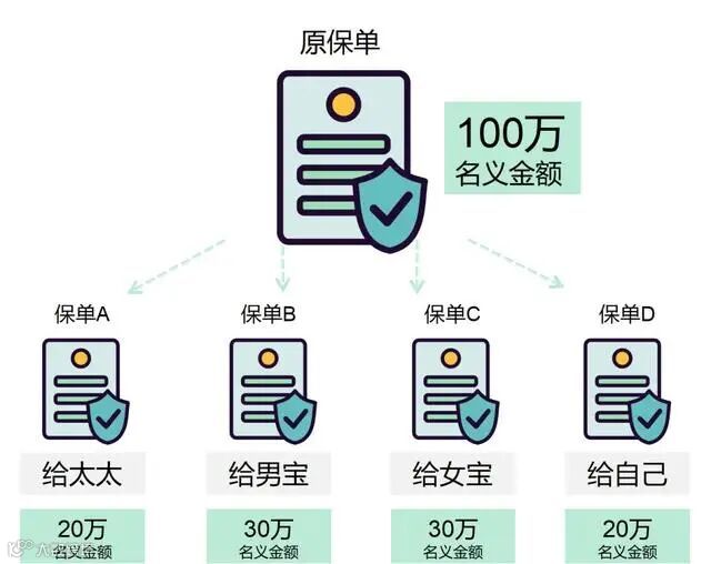 2、保险责任层面:将原保单的保障内容或现金价值,分配到多份新保单中。