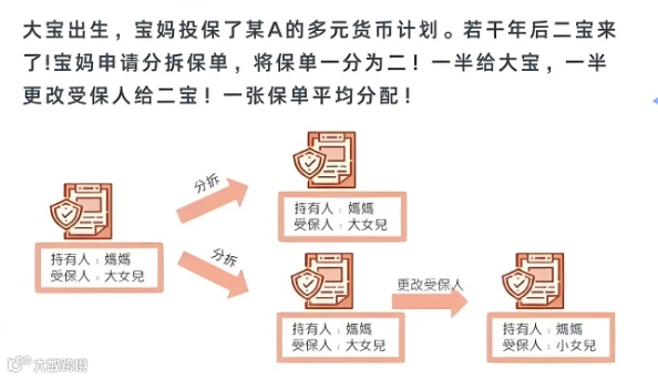 操作:她申请将原保单拆分为两份,一份继续以大宝为受保人,另一份修改受保人为二宝。