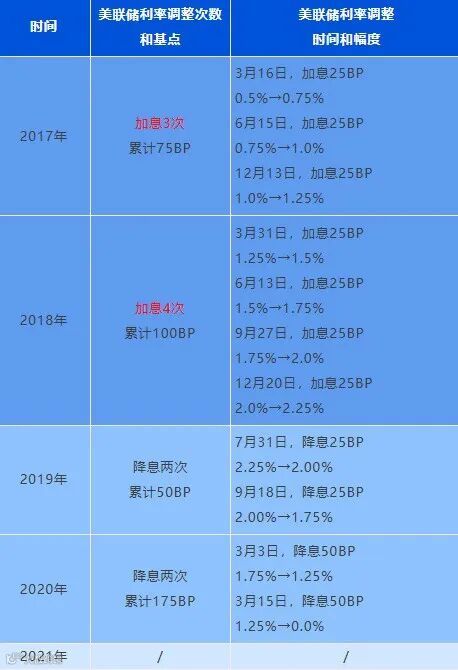 2017~2021美联储货币政策