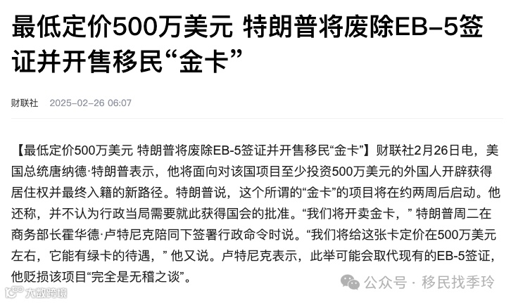 随着特朗普的言论引发的不确定性,一旦新政策落地,可能会提高投资门槛,甚至可能取代现有的 EB - 5 签证项目。