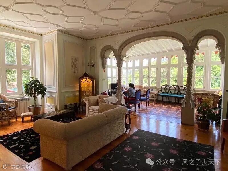 这是栋百年老建筑,一楼的客厅和餐厅很有古味,但主楼内的房间面积不大舒适度一般,花园带有厨房的公寓会更自在,还有游泳池和日光浴草坪。