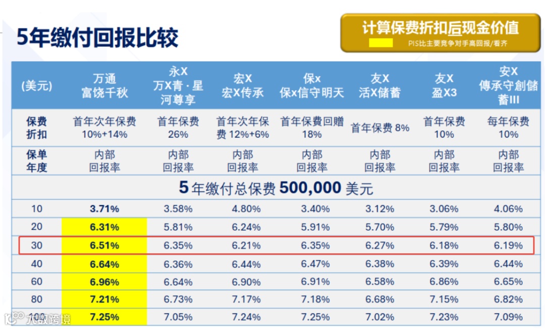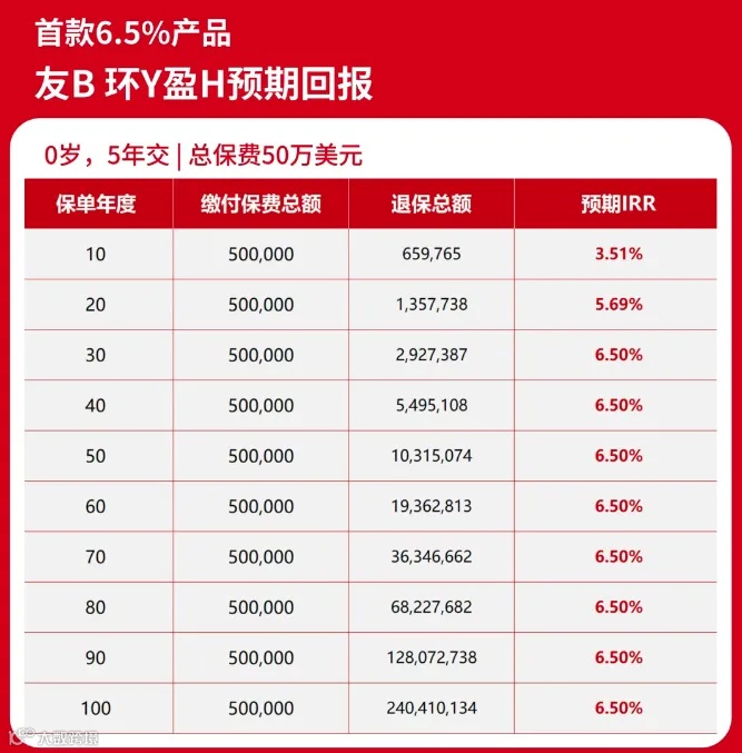 环宇盈活第30年预期复利达6.5%,贴近监管上限。
