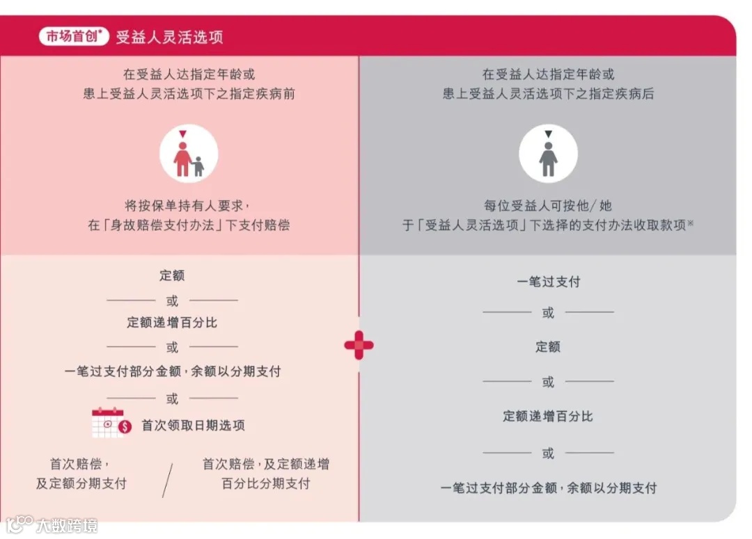身故赔付支持多种支付方式,还可针对特定疾病提前赔付。
