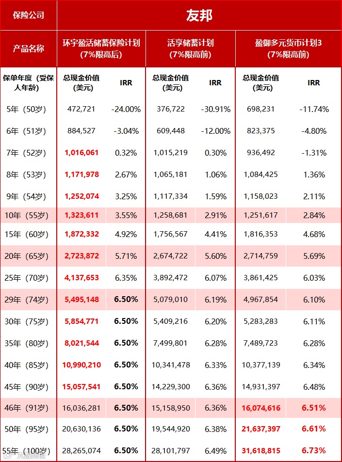 在6.5%收益上限的新规下,友邦环宇盈活通过功能创新和前期高现价脱颖而出,是兼顾收益与功能的优质选择。