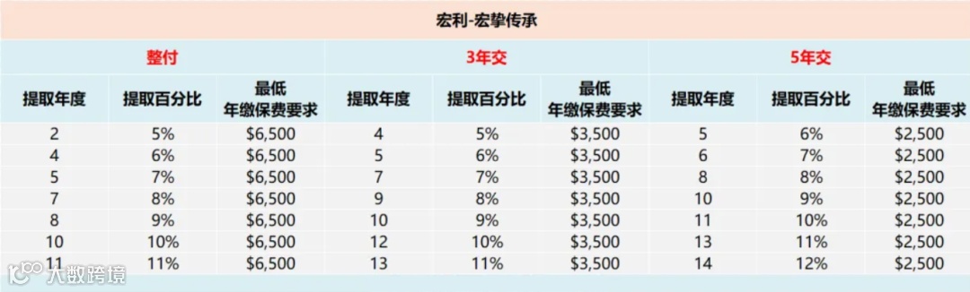 宏利宏挚传承的缴费年期十分灵活,涵盖整付、2年交、3年交、5年交、10年交、15年交(需满足最低保费要求),每种缴费方式都对应专属常规提领方案,无“断单”风险,可按需选择: