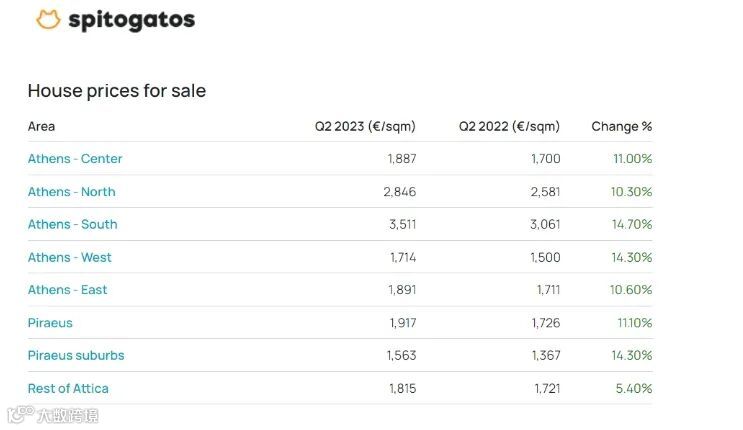 其中,希腊最大两个城市:雅典地区的涨幅达到了16.5%,北部的塞萨洛尼基为16.1%,雅典南部富人区房价同比上涨13.2%,成为希腊房价最高的区域。