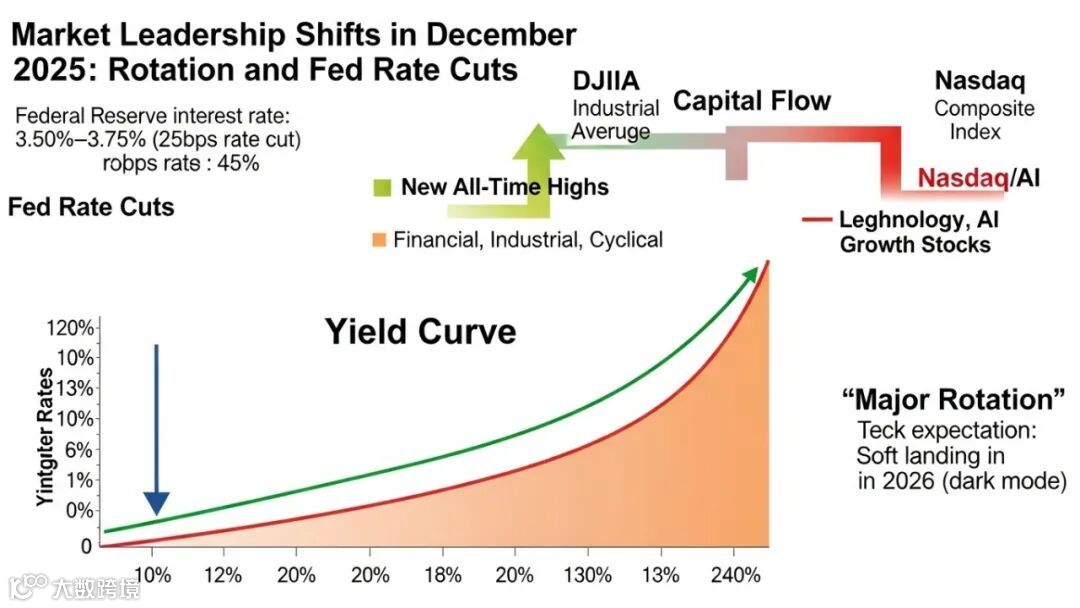 2025年岁末,美国股市经历了一个关键转折点,市场在联邦储备委员会(简称“美联储”)实施降息这一传统利好政策后,却呈现出非传统的结构性走势,预示着一场重大的板块轮动(Great Rotation)正在发生。