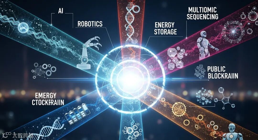 《Big Ideas 2025》报告的核心论点在于,世界正站在指数级经济增长的新纪元门槛上。这份报告不仅是ARK投资策略的理论基石,更是一份旨在教育投资者、帮助他们理解并把握创新机遇的“蓝图”。报告特别强调了五大正在加速融合的技术创新平台,它们被视为推动全球经济实现跨越式增长和深刻结构性变革的关键力量: