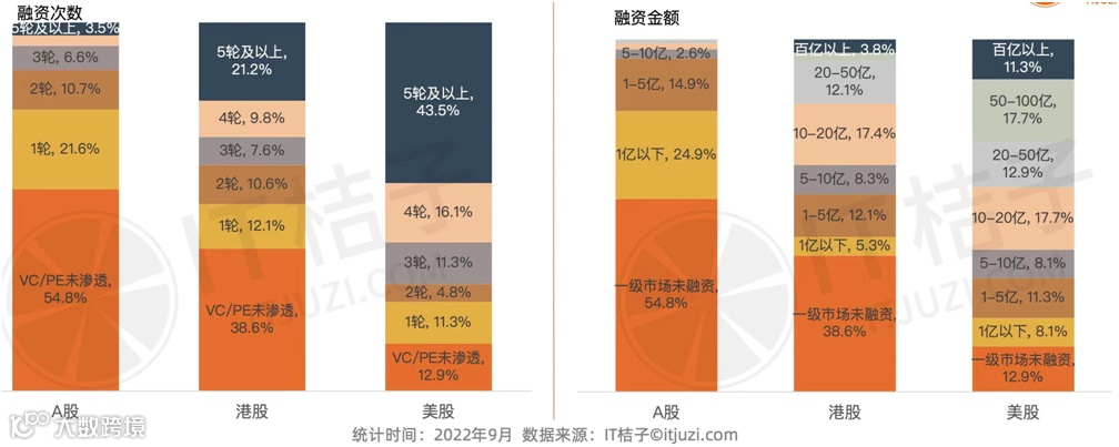 上图是2020-2022三年中国企业在各个市场的IPO统计分析。我们看到哪怕已经到了2020年,仍然有接近80%的A股上市公司,在IPO前的融资次数是在1次以内的。过去二十年,中国本土的创投VC,多数时候更像是催化剂。他们依靠敏锐的嗅觉,以及对中国本土资本政策的解读,赚的是一二级市场的差价,做的其实是套利的事情。