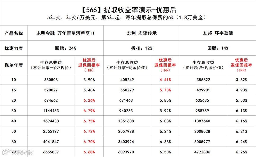 三款产品的优惠政策差异显著,而优惠带来的“实际保费降低”,直接推动了收益率的提升——其中永明星河尊享II的优势最为亮眼: