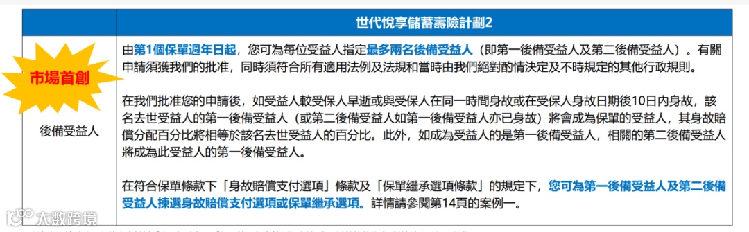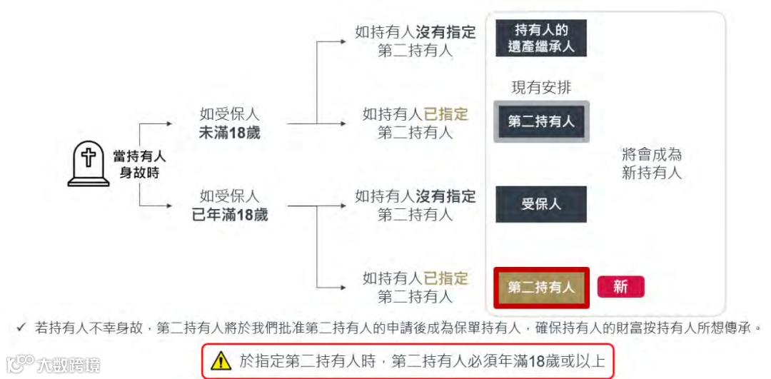 为避免原投保人突发身故导致保单陷入遗产分割,香港保险推出“第二投保人”(或称“保单继承人”)机制,堪称资产传承的“防火墙”。