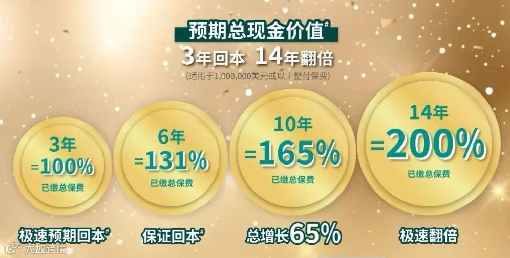 第6年实得价值与自付保费比达216%,实现本金翻倍;