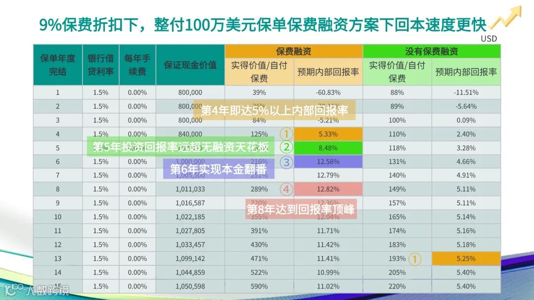 借助1.5%左右的融资利率与4.66%的保单预期回报之间的息差,通过百万级资金杠杆,投资者可在3-5年内实现超额收益,充分利用利率低位窗口获利。