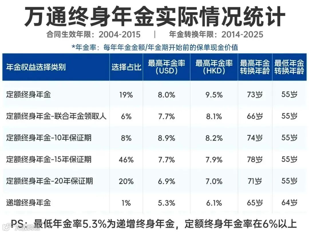 万通自第五年起提取255次表现优异,得益于“富R千秋PIS”高红利。拥有12种年金权益,在退休传承方面领先。