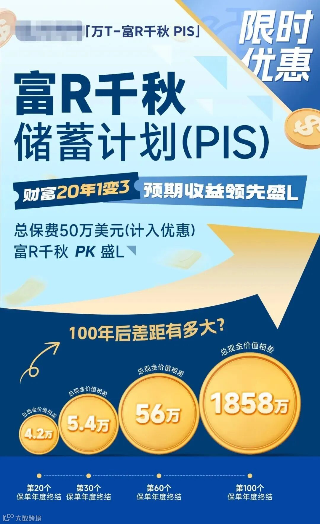 万T「富R千秋PIS」提供8%保费折扣及6%预缴利息优惠,投保即享;