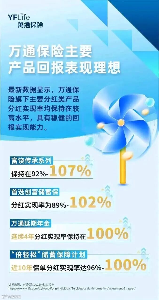 万通保险旗舰分红险表现良好,「富饶传承」系列实现率92%-107%,「富饶千秋PIS」提供首年保费8%折扣和6%预缴利息优惠。