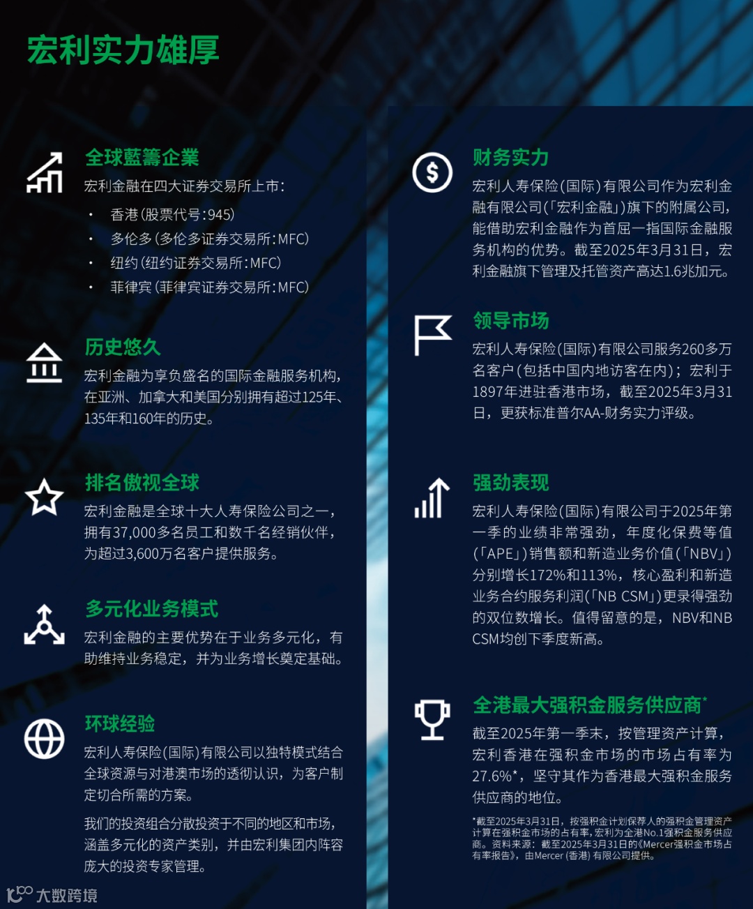宏利扎根亚洲已久,自1897年布局香港业务,目前是香港最大强积金服务商,服务超260万港澳客户。