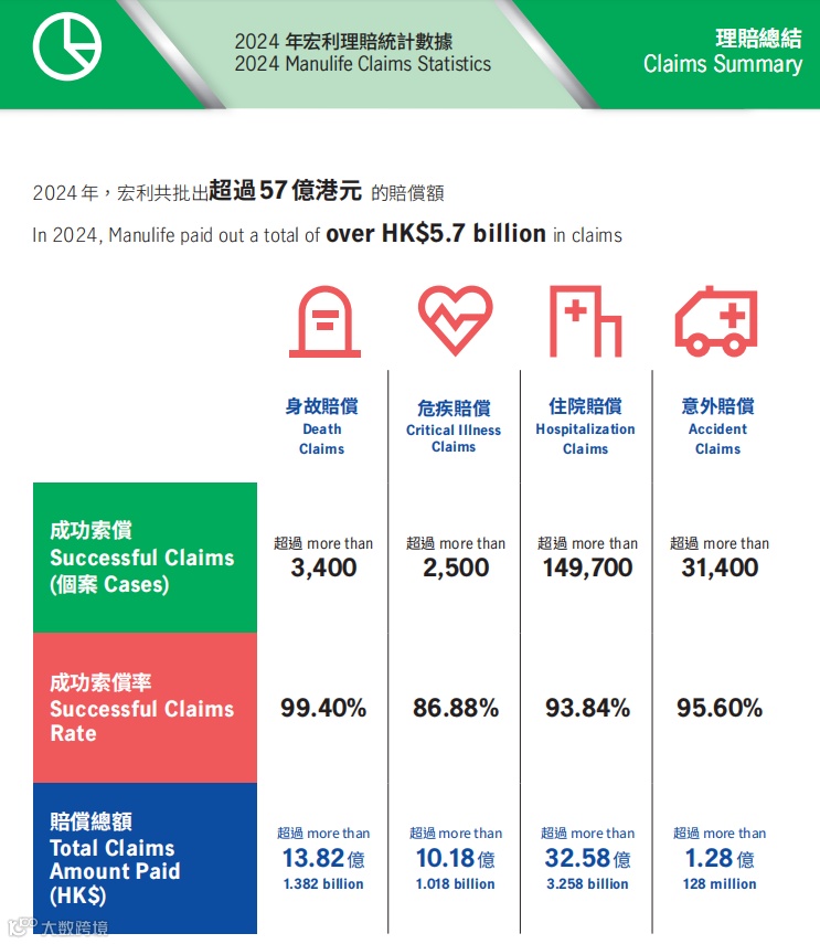 其2024理赔报告亮眼,全年赔付超57亿港元、18.72万多笔,成功率达94.12% 。