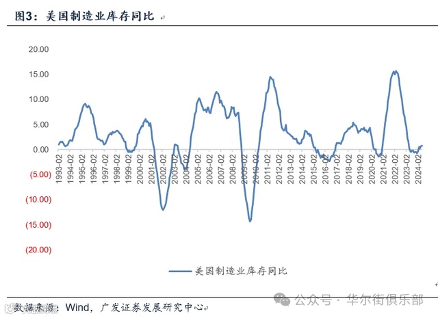 二是库存位置。制造业库存周期位置也是判断经济趋势的经验坐标之一。本轮库存同比底部在2024年1月的-0.7%,后缓慢回升,6月同比也只有0.7%。库存周期位置偏低对应经济内生下行弹性不会太大。