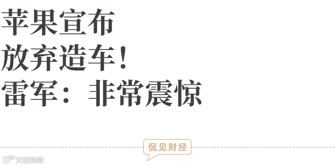 侃见财经认为,苹果之所以放弃造车计划,一方面是因为可能产出比不对等,第二可能是因为市场竞争非常充分,此时放弃其实并不算晚。对于苹果放弃造车,雷军发文表示,非常震惊。随后他继续发文称,苹果退出造车后,苹果用户选购智能电动车,小米SU7 肯定是最好的选择。