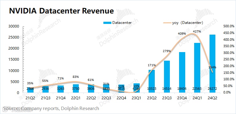 结合公司给出的下季度325亿美元的收入指引,海豚君认为增长仍主要来自于数据中心业务,其中云服务厂商的全年资本开支计划在本季度也有所上调。四季度Blackwell的出货,也有望给业务带来新的增量。
