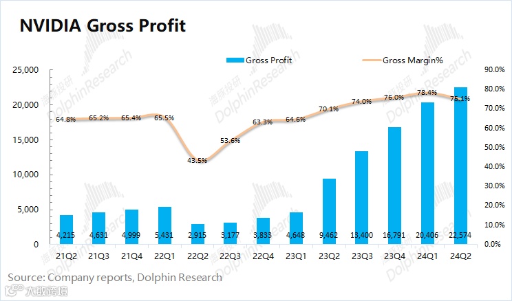 英伟达对2025财年第三季度的毛利率预期为74.4%(正负0.5%),低于市场预期(75.1%)。在AI等需求的带动下,公司毛利率的中枢已经从65%提升至70%以上。而在部分产品材料等影响下,公司毛利率仍将承受一定压力。