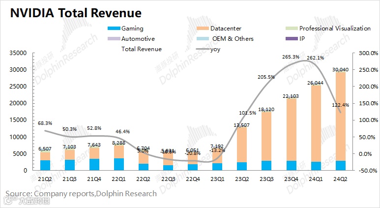 公司汽车业务虽然也有明显回升,但当前在收入中占比很小(不足2%)。目前英伟达的业绩表现,仍主要关注于数据中心和游戏业务的表现。