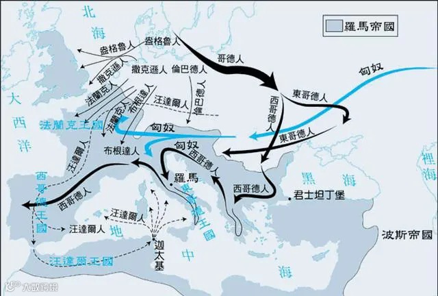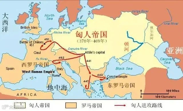 ▲鼎盛时期的匈人帝国