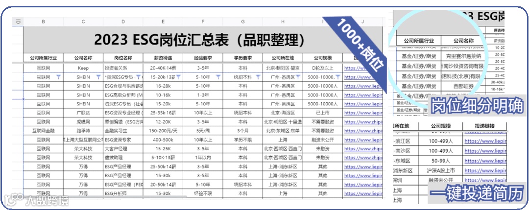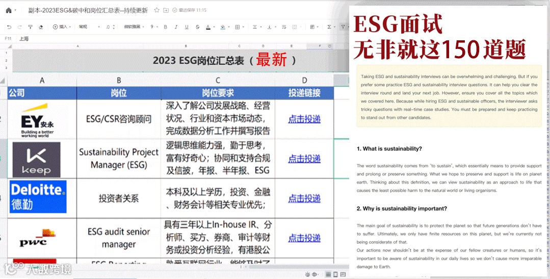 1000+ESG求职公司岗位信息表+150道高频面试题&面经