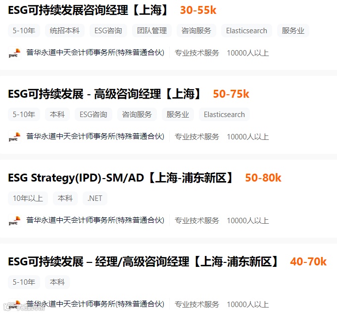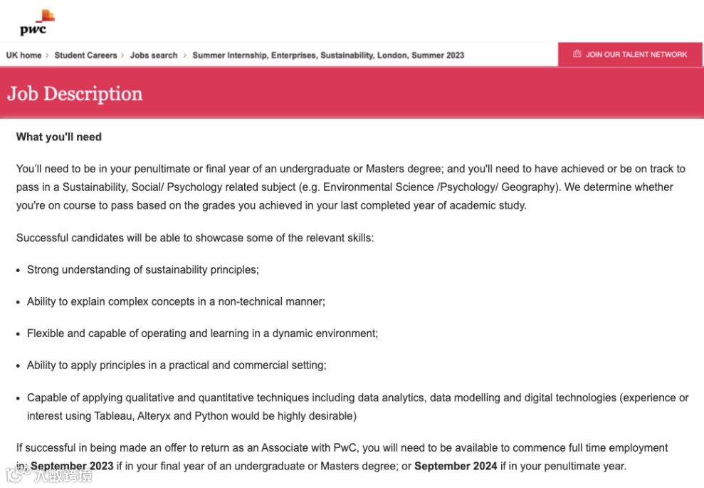 以PWC针对ESG的暑期实习生招聘需求为例,第一条就是要求对于可持续发展的概念有基础的了解。
