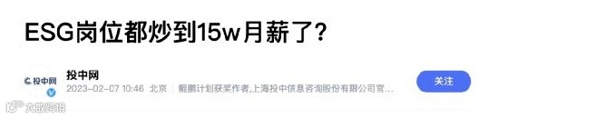 “ 今年2月初,投中网一篇《ESG岗位都炒到15W月薪了?》火爆网络