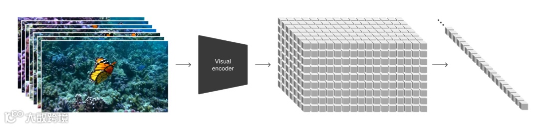 图1. Sora 将视频编码映射到隐空间,再切割成时空补丁,被称为时空令牌(time-space token)。(openai.com)