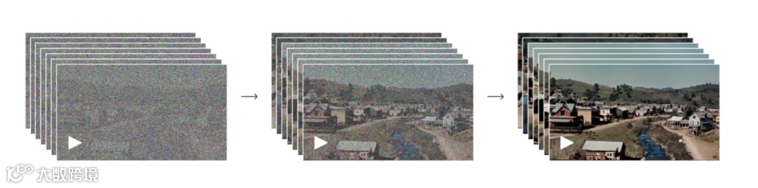 图2. Sora用扩散模型从白噪声时空令牌生成数据时空令牌。(openai.com)