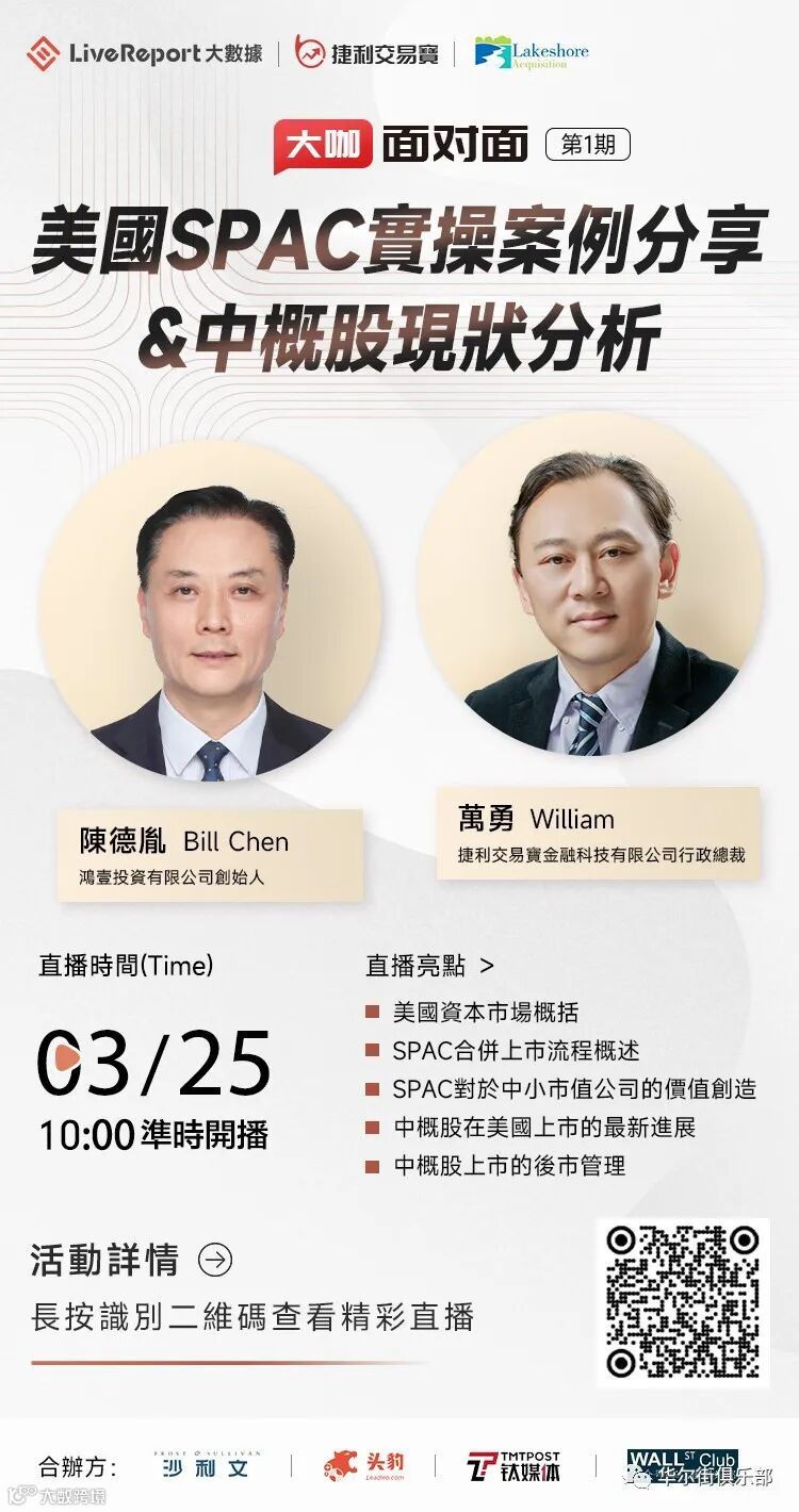LiveReport大数据【大咖面对面】美国Spac实操案例分享&中概股现状分析